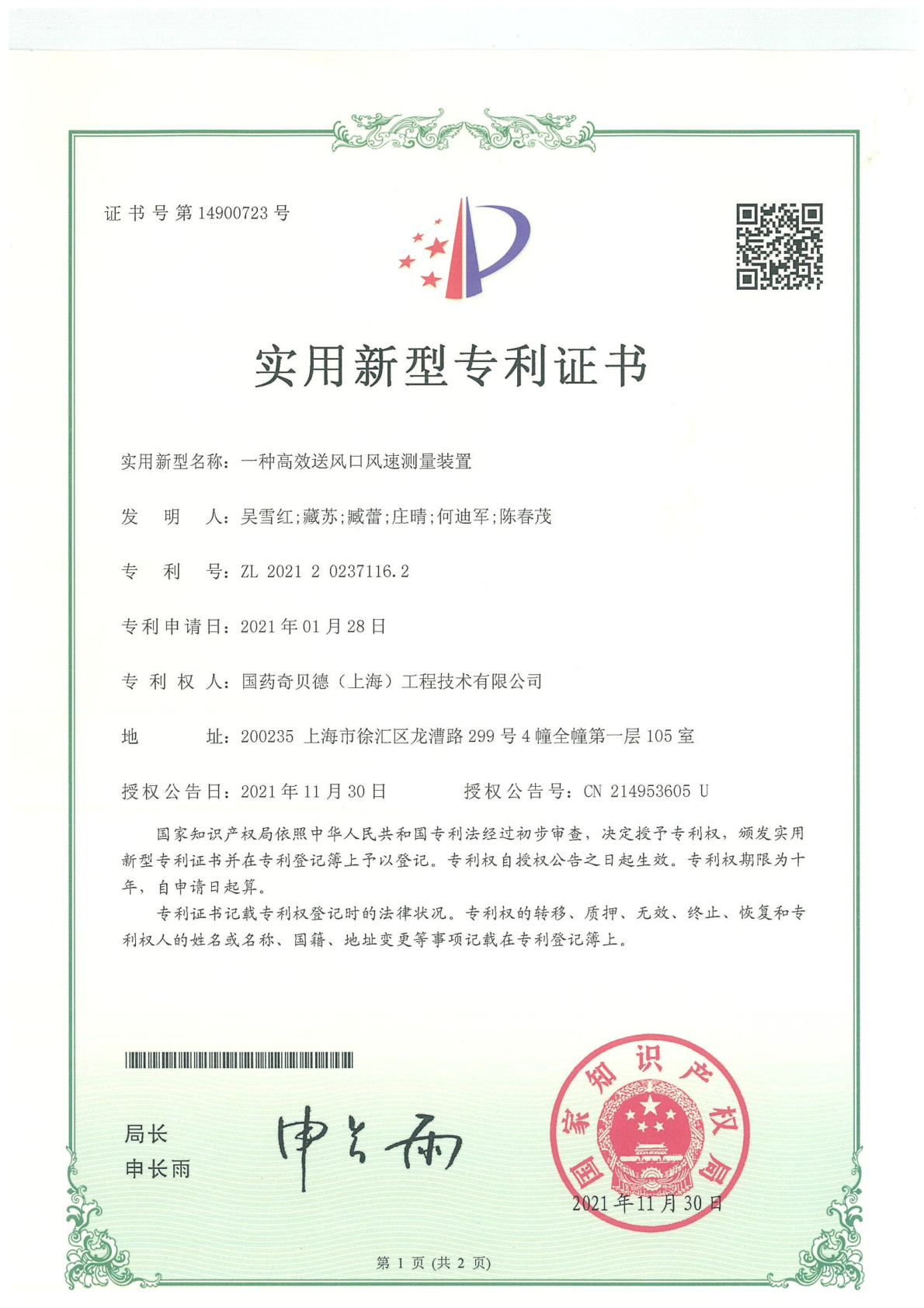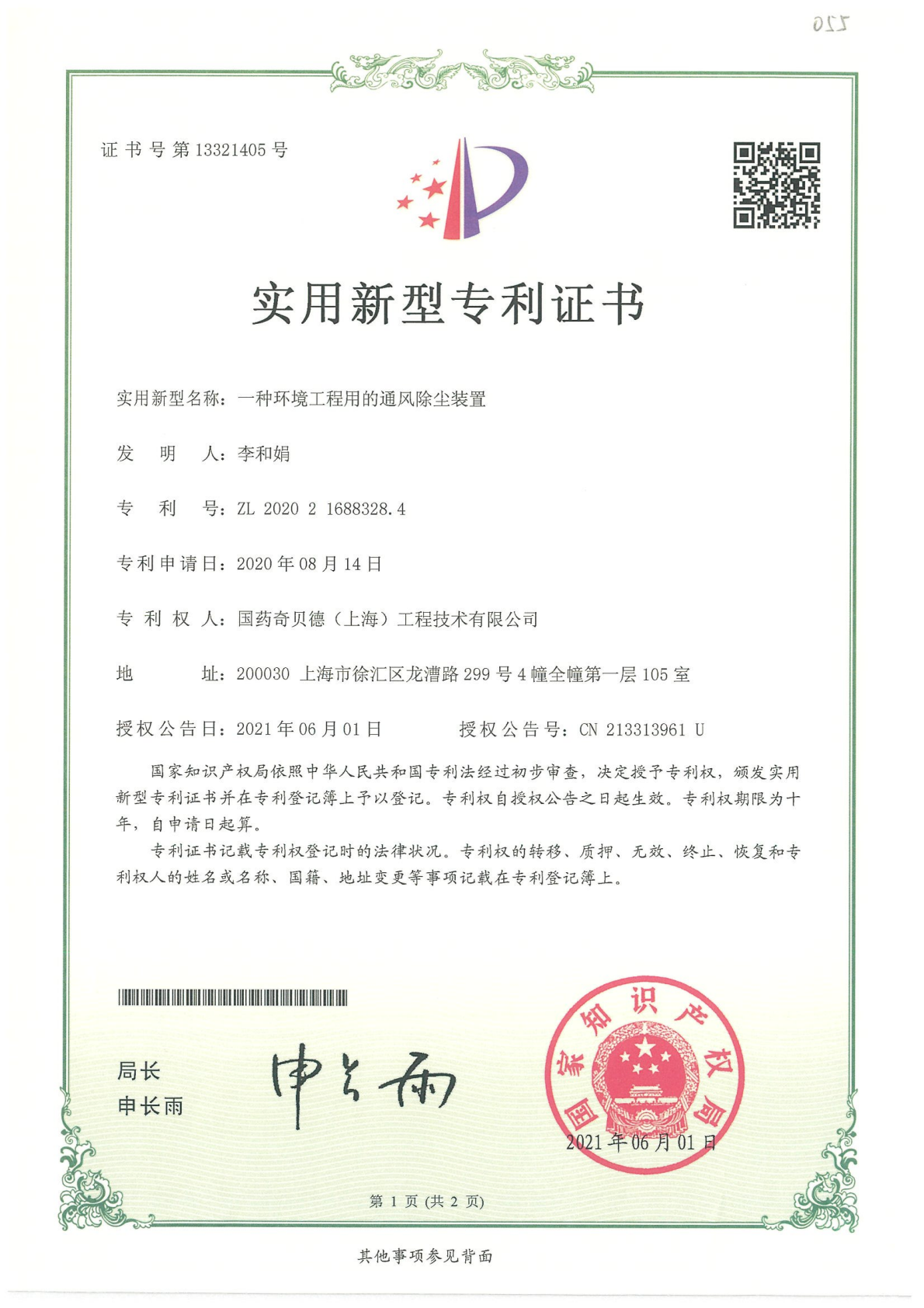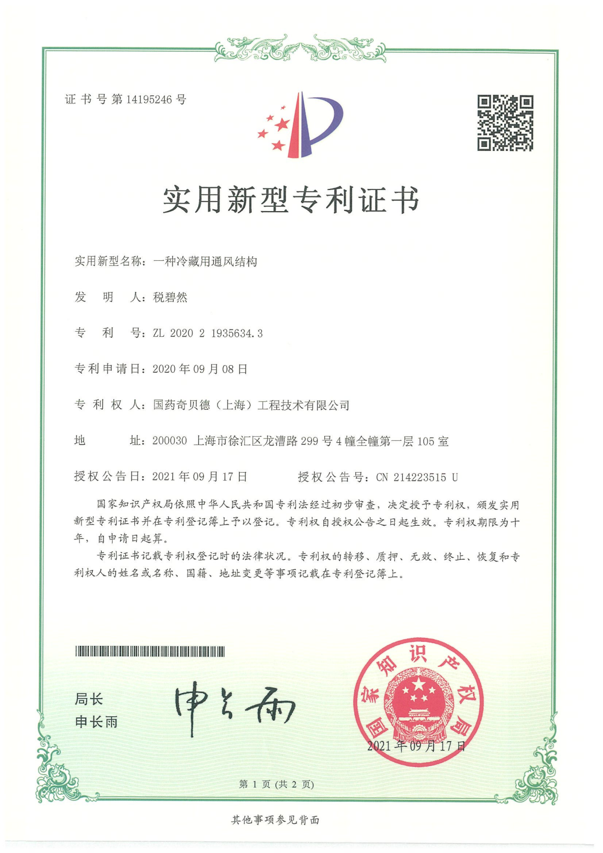 实用新型专利证书