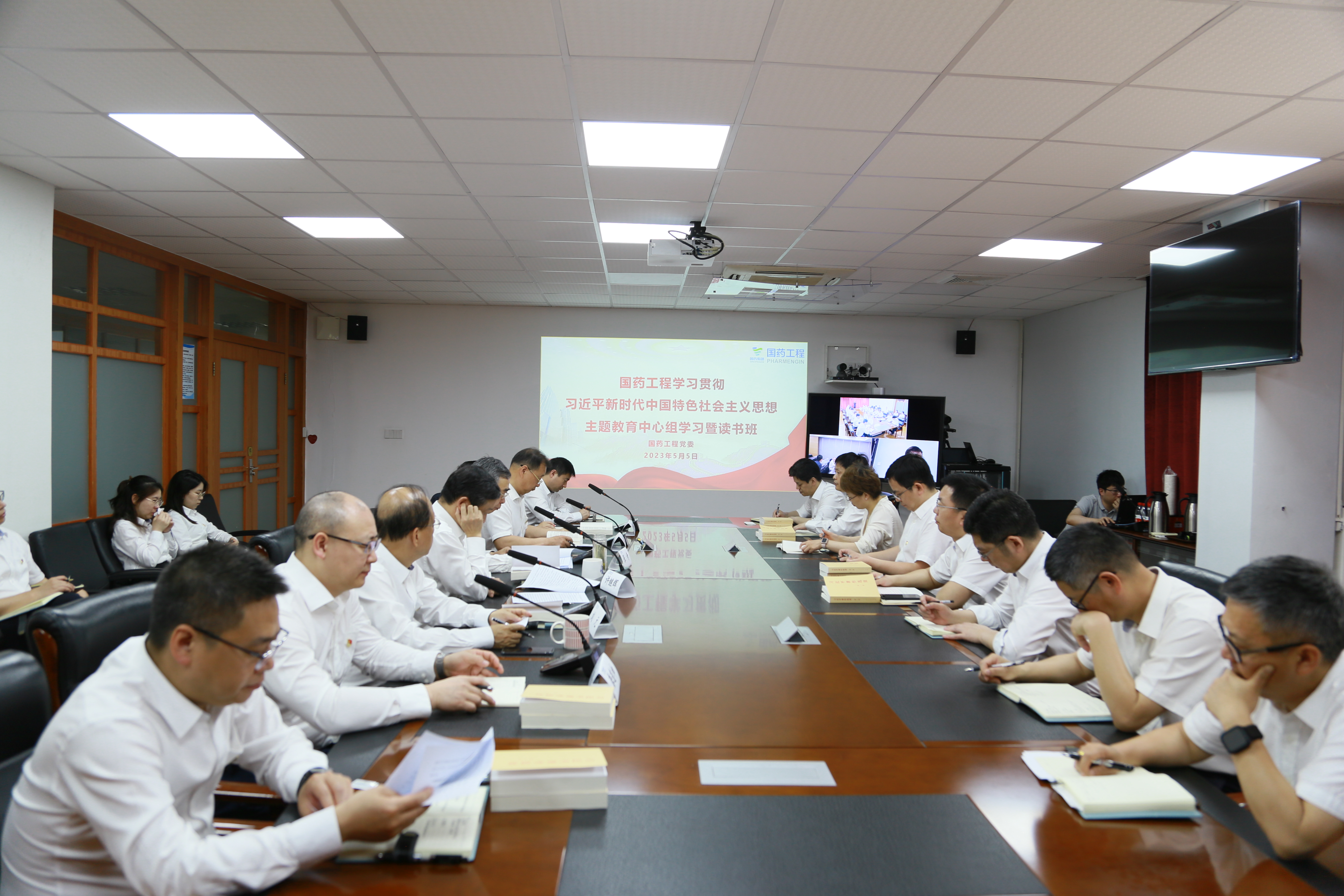 5月5日,国药工程党委举行学习贯彻习近平新时代中国特色社会主义思想主题教育中心组学习暨读书班,深入学习贯彻习近平总书记关于主题教育系列重要讲话精神,传达学习国药集团党委书记、董事长刘敬桢同志在国药集团党委主题教育读书班(第一期)动员讲话精神,围绕《习近平著作选读》相关篇目读原著、学原文、悟原理,开展学习研讨。公司党委书记、董事长张奇主持会议并讲话,公司领导班子成员、部门负责人以现场+视频的形式参加学习。