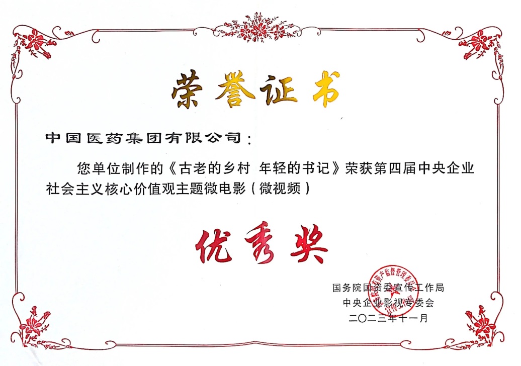 国药工程作品《古老的乡村 年轻的书记》荣获中央企业社会主义核心价值观主题微电影(微视频)社会责任类作品优秀奖。