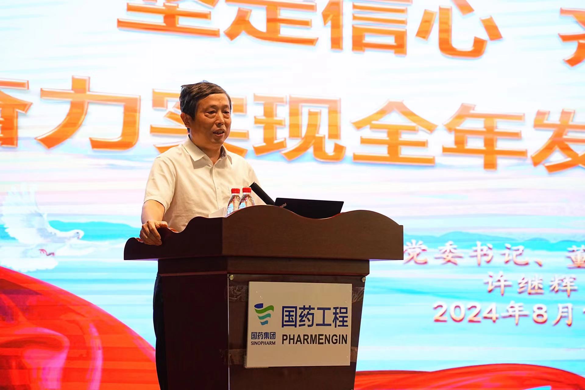 国药工程党委书记、董事长许继辉作了题为《坚定信心 齐心协力 奋力实现全年发展目标任务》的讲话,他指出,上半年,公司坚持把高质量发展作为首要任务,以深化巡视整改和扎实开展党纪学习教育为契机,聚焦稳增长、调结构、转方式、提质量、增效益、强党建,加快推动转型发展,切实增强核心功能、提高核心竞争力,整体工作实现稳中有进的良好发展局面。结合当前新形势、新挑战,许继辉提出以下要求和希望:一是加强党的建设,以高质量党建引领高质量发展。二是认真抓好整改,增强以巡促改、以巡促建、以巡促治的实效。三是坚持科技创新,加快形成新质生产力,增强发展新动能。四是深化产业链协同,不断发挥“设计引领”的核心竞争力。五是把握数字时代新机遇,加快推进数字化转型升级。