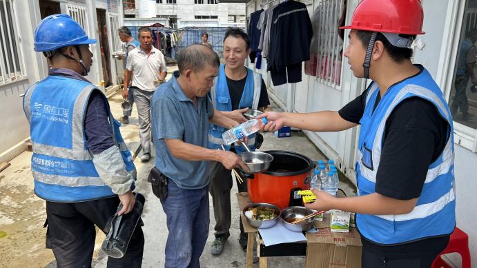 国控湖南项目部为一线作业人员送去防暑降温物资,在施工现场设置茶水亭、提供绿豆汤,帮助工人们缓解暑热。同时合理安排施工工序,调整作业施工时段,避免工人高温作业;严格开展安全教育培训,切实抓好夏季安全生产和文明施工,确保平安度夏。
