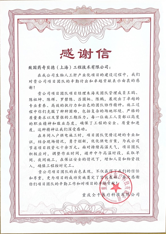 自项目开工以来,项目团队高度重视、精心组织、科学施工,克服施工难度大、工期紧迫等多重挑战。在供电方案方面,团队通过创新优化,为客户节省了70余万元的投资,助力项目顺利建成国际一流水平的产业化基地,赢得业主充分肯定和高度赞扬。