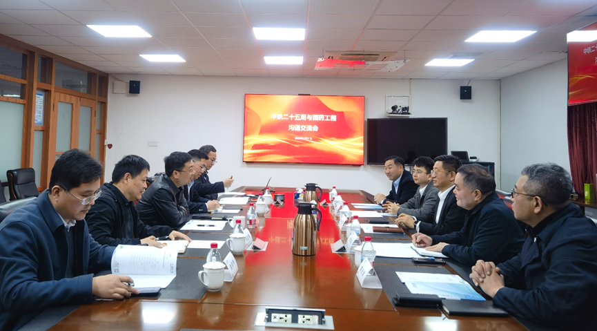3月21日,中铁二十五局总经理、党委副书记程志强一行到国药工程交流座谈。国药工程党委书记、董事长陈金辉,党委副书记吴友刚及相关部门负责人参加交流活动。