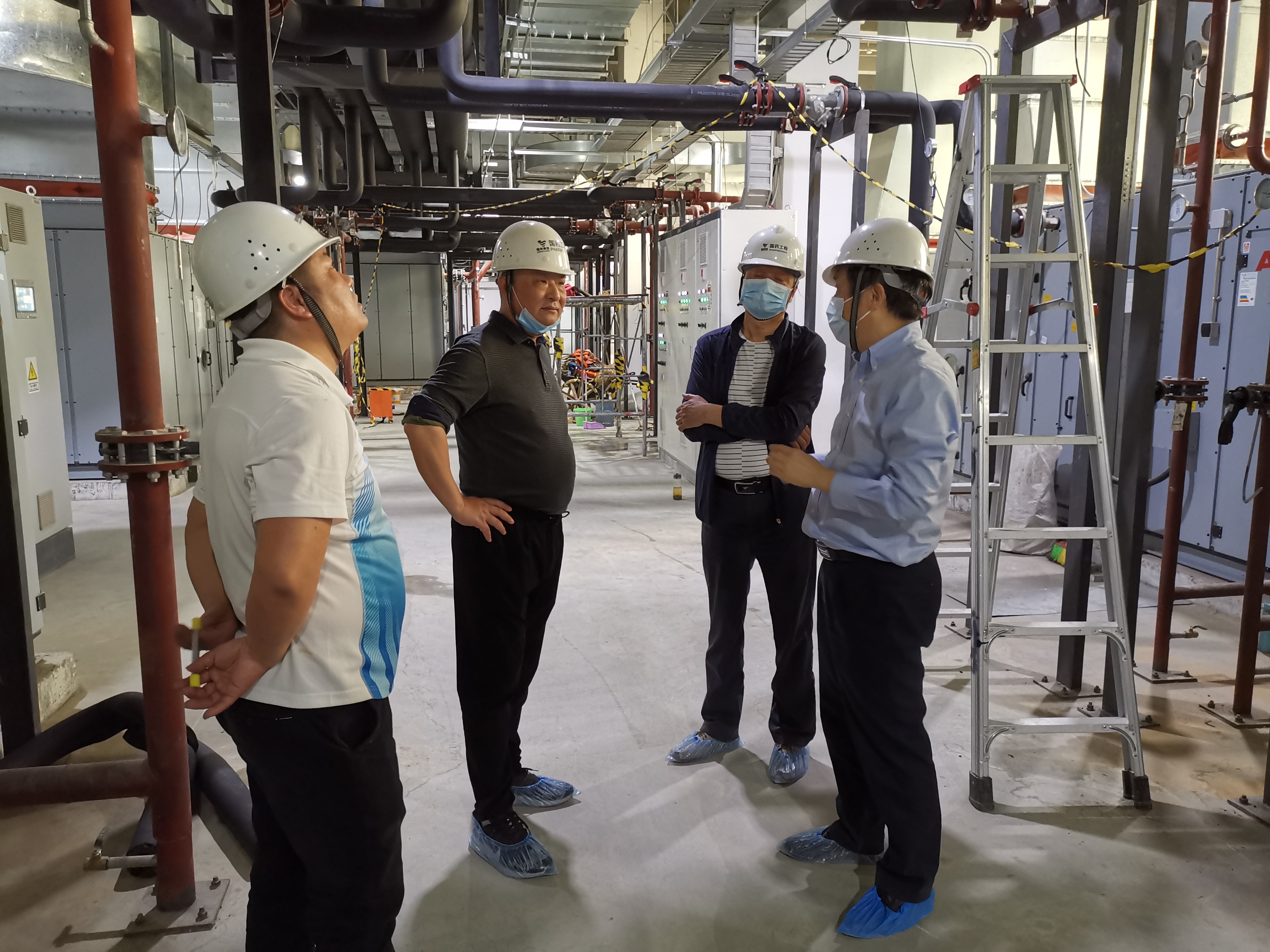 在项目现场,许继辉听取了项目组关于施工建设进展及疫情防控的情况汇报,通过对血制车间、质检楼、动力中心及污水处理站等单体施工现场的实地检查,详细了解了项目工地目前防疫物资储备、复工复产人员的具体情况和下一步工作计划和安排。