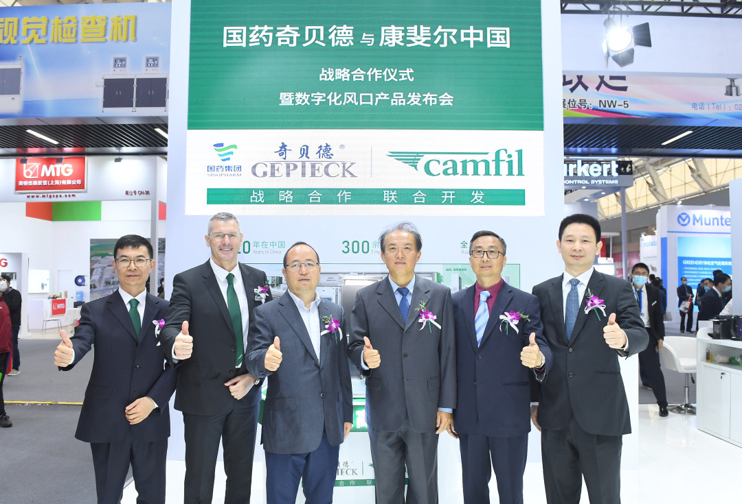 5月10日,国药奇贝德与康斐尔中国在第60届中国国际制药机械博览会康斐尔展台上举行了战略合作仪式暨数字化高效送风口产品发布会。中国疫苗行业协会会长封多佳,中国疫苗行业协会设备和材料专业委员分会主任龚恒俭,国药奇贝德(上海)工程技术有限公司总经理王云宝,康斐尔中国总经理 Michel Moulin 先生出席了活动。中国疫苗行业协会封多佳会长对该款数字化高效送风口给予高度认可,并对国药奇贝德与康斐尔中国的战略合作表示肯定和祝贺。