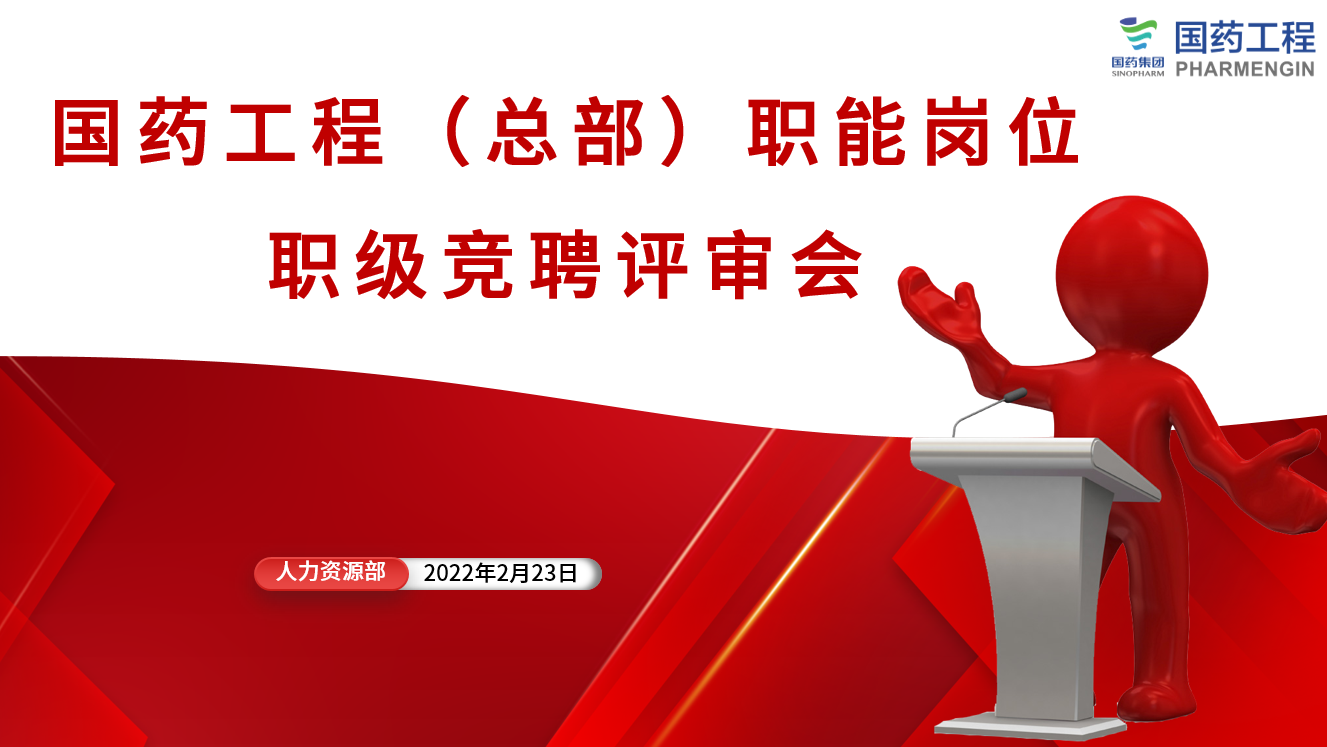 为贯彻落实三项制度改革相关要求,稳步推进国药工程“十四五”规划战略目标顺利实现,进一步激发职能岗位员工工作积极性、主动性及创造性,完善职能岗位职业发展通道,全面发挥职能岗位的协同与管理价值,国药工程于2月23日召开总部职能岗位职级竞聘评审会,共计23名职能岗位员工参与述职竞聘。