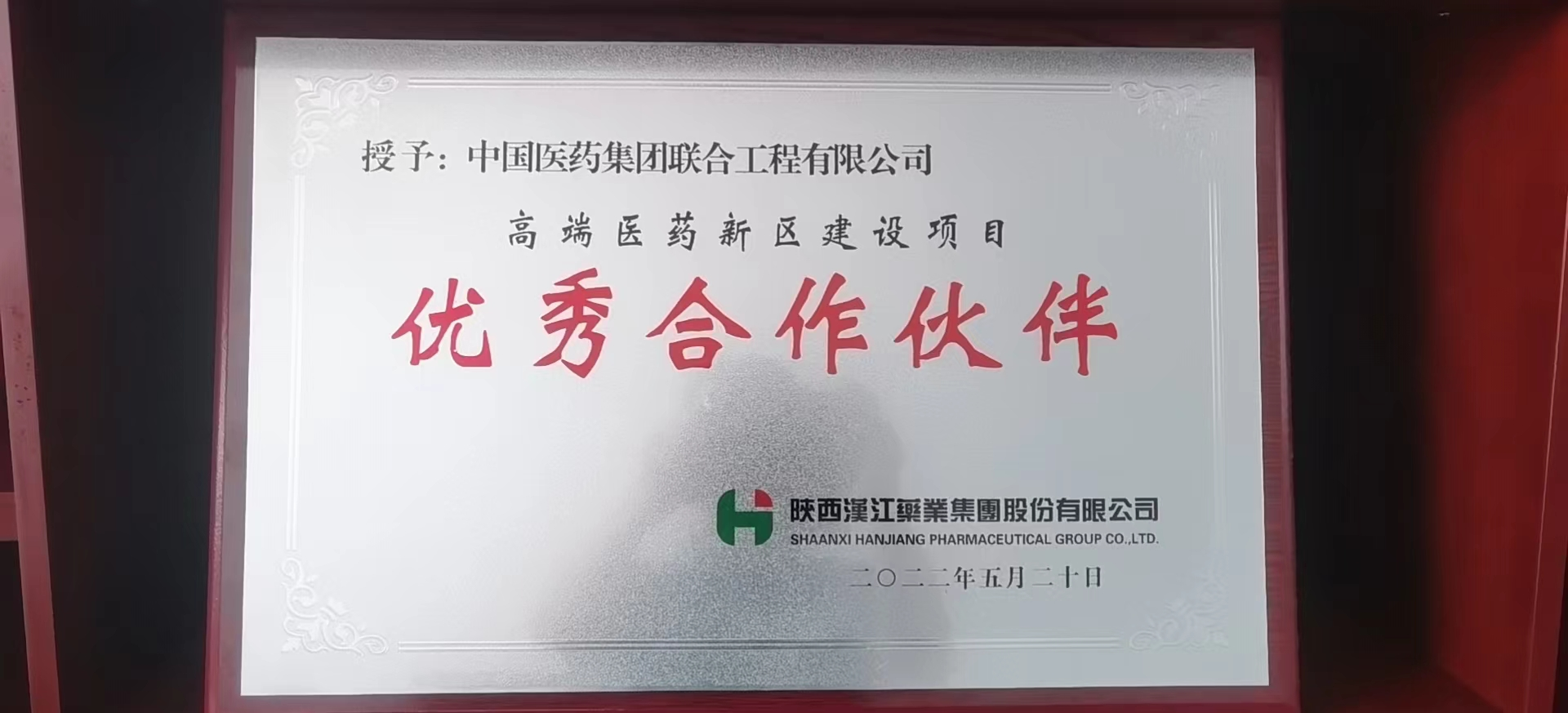 (陕西汉江药业集团股份有限公司授予国药工程优秀合作供应商称号)