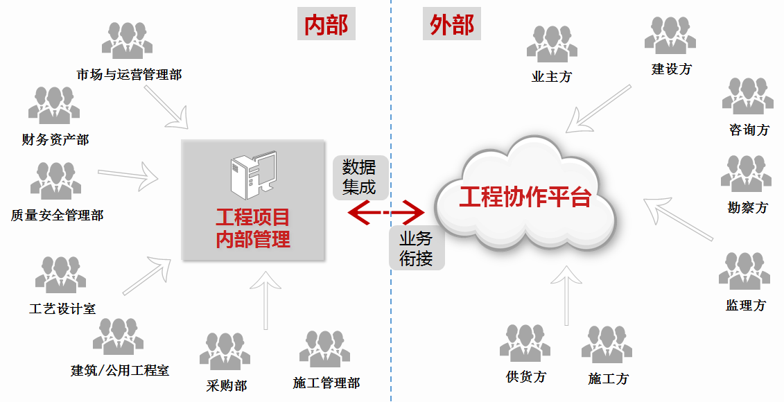 目前公司一期规划已经上线的业主方项目管理平台,以项目协作为主线,重点围绕客户关注的设计进度、设计质量等内容进行在线交互,规范双方项目往来资料传递以及项目各阶段方案、成果的确认,做到过程留痕,提高项目协作效率,从而进一步提升客户服务质量,加强客户满意度建设。随着工程项目管理的推进,通过参建方协作平台,提高各参建方的工作协同性,提高工作效率,在一定程度上实现参建各方的资源共享,工程资料集中化管理及可追溯性,各方可及时获得项目所有资料信息并审核确认。而通过招标采购的电子化操作,积累大量采购历史数据,形成公司的价格数据库,评标比价过程中进行利用参考,从而降低招标采购成本,进一步强化公司的核心竞争力。