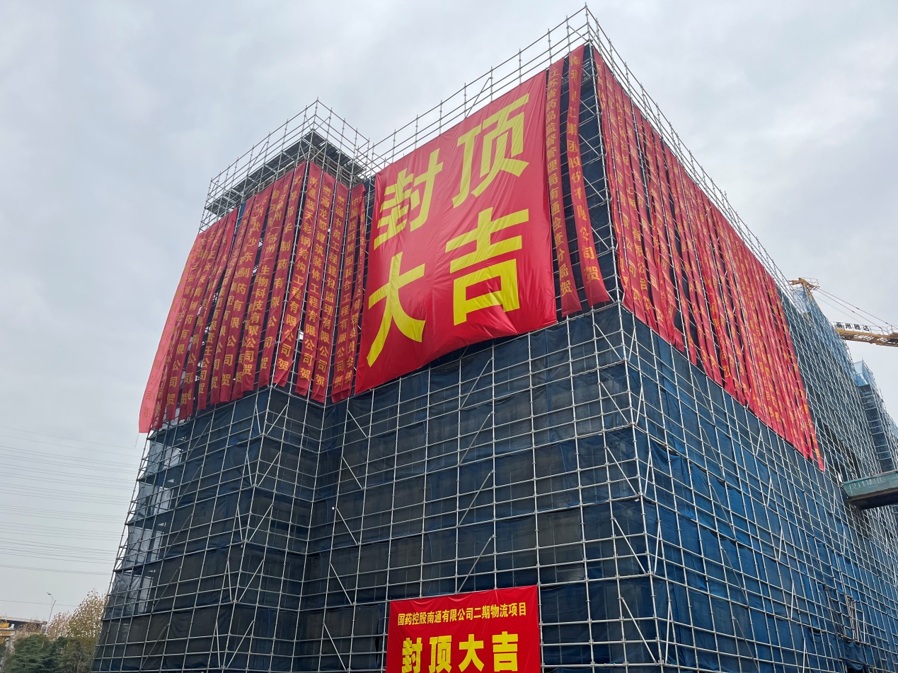 近期,由国药工程承接的国药控股南通有限公司新建现代物流中心用房项目顺利封顶。